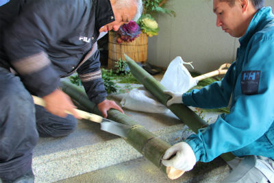 宿舎の玄関に、毎年恒例の手作りの『門松』を設置しました!