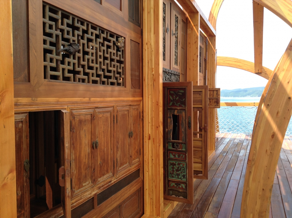 中国で廃棄された家具や建具を集めて修復・再構築した