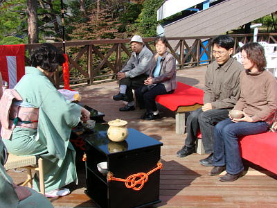 が、観光客にお手前を披露し、お抹茶でお接待していました。